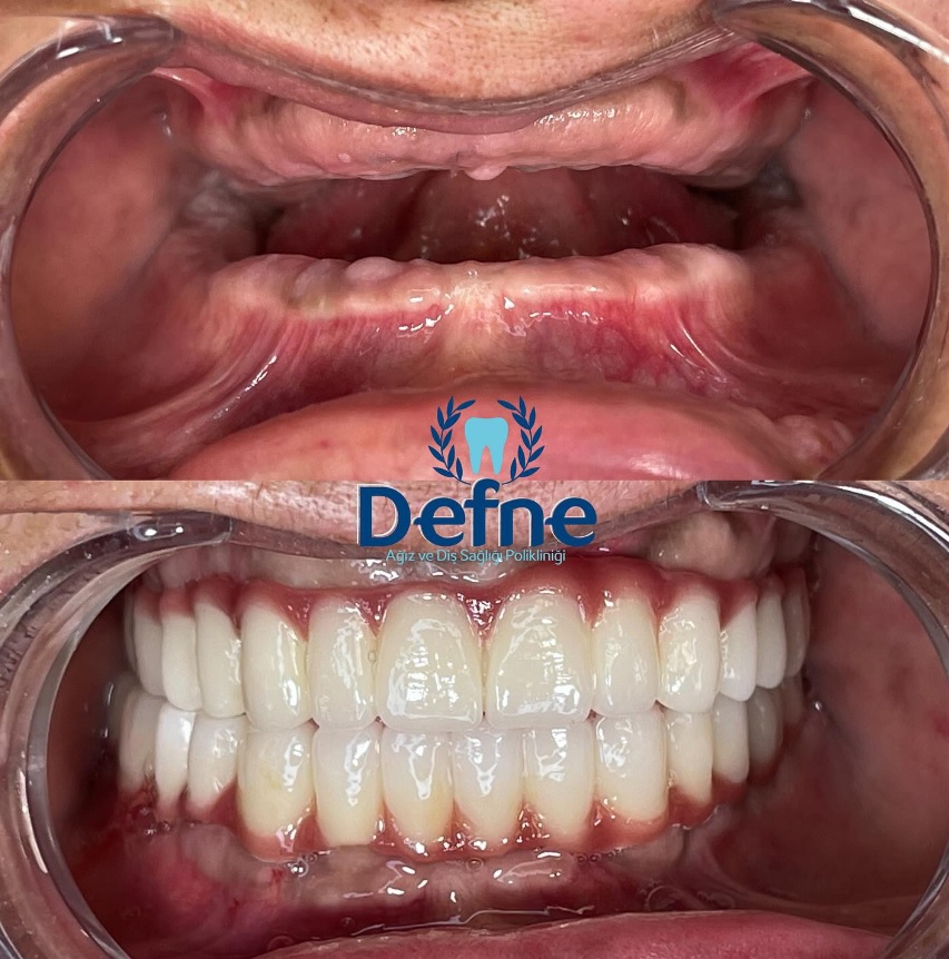 Implants are surgically placed into the jawbone under local anesthesia. After the healing process, prosthetic teeth are placed on the implants. A customized treatment plan is applied to each patient.